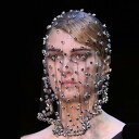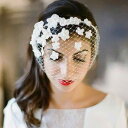 ヘッドドレス レディース 鳥かごベール カチューシャ エレガント アップリケ パール ビーズ チュール 菱形デザイン 結婚式 ブライダル パーティー 撮影用 ホワイト