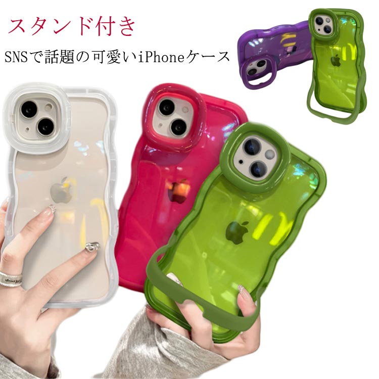 うねうね ケース 透明ケース スマホケース plus クリア クリアケース 耐衝撃 スタンド付き iphone15 iphone14 iphone15pro max ウェーブ なみなみ 韓国