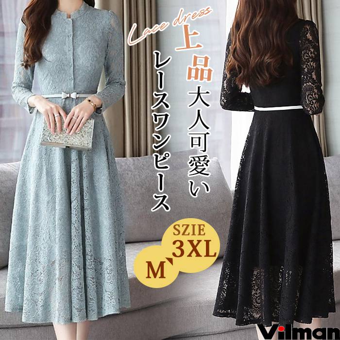 総レース ドレス ワンピース 長袖 春 秋 パーティードレス ゆったり ミモレ丈 フォーマル レディース 結婚式 同窓会 発表会 披露宴 入園式 二次会 入学式 お呼ばれ ブラック フレア レース 大きいサイズ 20代 30代 40代 50代 冬 おしゃれグローリーパーク