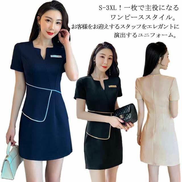 S-3XL!一枚で主役になるワンピーススタイル。お客様をお迎えするスタッフをエレガントに演出するユニフォーム。快適さもおしゃれ見えも!どちらか一方なんて選べない。全てがパーフェクトな一着を選ぶならこれしか無い!細部のディテールまでこだわった究極の一枚。ストレスなく動ける、着心地ソフトなストレッチ素材。美しいシルエットにこだわり、心地良い着心地を追求。 サイズ S M L XL 2XL 3XL サイズについての説明 サイズ:写真通り※上サイズ表の実寸法は商品によって1-3cm程度の誤差がある場合がございます。 素材 ポリエステル 色 ブラック ネイビー ベージュ 備考 ●サイズ詳細等の測り方はスタッフ間で統一、徹底はしておりますが、実寸は商品によって若干の誤差(1cm〜3cm )がある場合がございますので、予めご了承ください。 ●商品の色は、撮影時の光や、お客様のモニターの色具合などにより、実際の商品と異なる場合がございます。あらかじめ、ご了承ください。 ●製品によっては、生地の特性上、洗濯時に縮む場合がございますので洗濯時はご注意下さいませ。 ▼色味の強い製品によっては他の衣類などに色移りする場合もございますので、速やかに(脱水、乾燥等)するようにお願いいたします。 ▼生地によっては摩擦や汗、雨などで濡れた時は、他の製品に移染する恐れがございますので、着用の際はご注意下さい。 ▼生地の特性上、やや匂いが強く感じられるものもございます。数日のご使用や陰干しなどで気になる匂いはほとんど感じられなくなります。