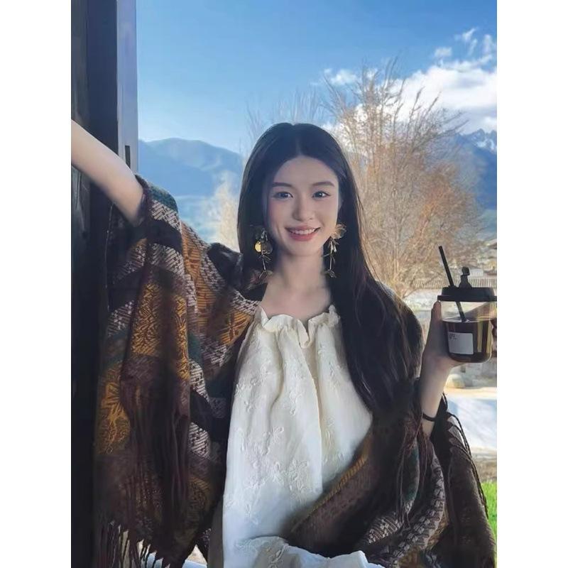 2個セットショール レディース 春 チャイナドレス 服飾雑貨 エスニック ボレロ ストール ケープ 旅行 大判 薄手 レッド パープル カーキ グリーン