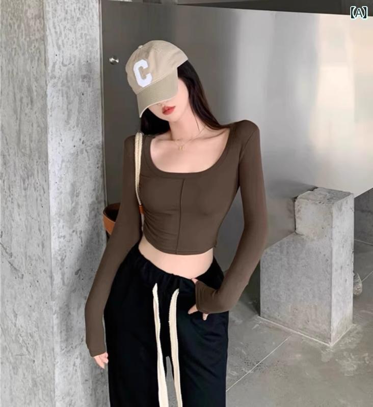 レディース カジュアル トップス 春秋 普段使い 魅惑的 スタイリッシュ ガール U ネック 長袖 T シャツ 女性 ハイエンド ショート へそ シック インナー レイヤリング