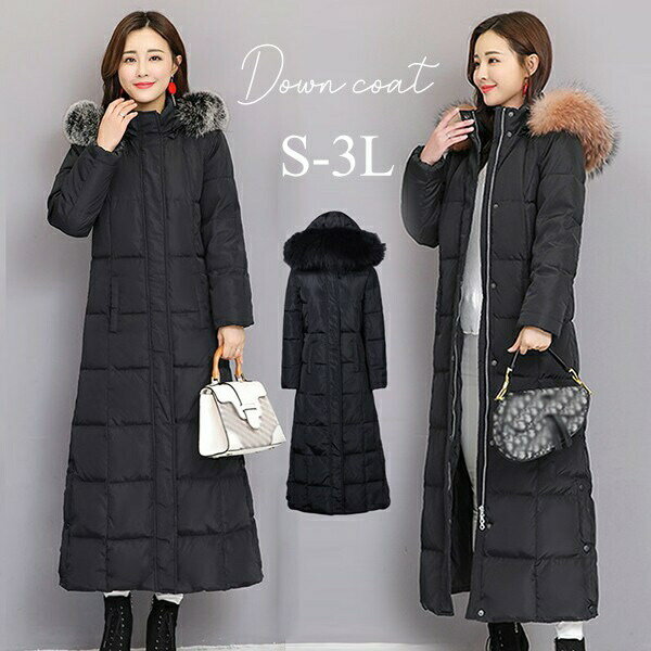 ダウンコート 超ロング レディース ダウンジャケット ファー Aライン 帽子付き フード 撥水 ファー付き 着痩せ 大きいサイズ 黒 ベンチブラック 厚手 冬服 防寒着 おしゃれ S M L LL 3L きれいめ 着痩せ 20代 30代 40代 50代 60代 秋 秋コート 冬 bg086zezeg4