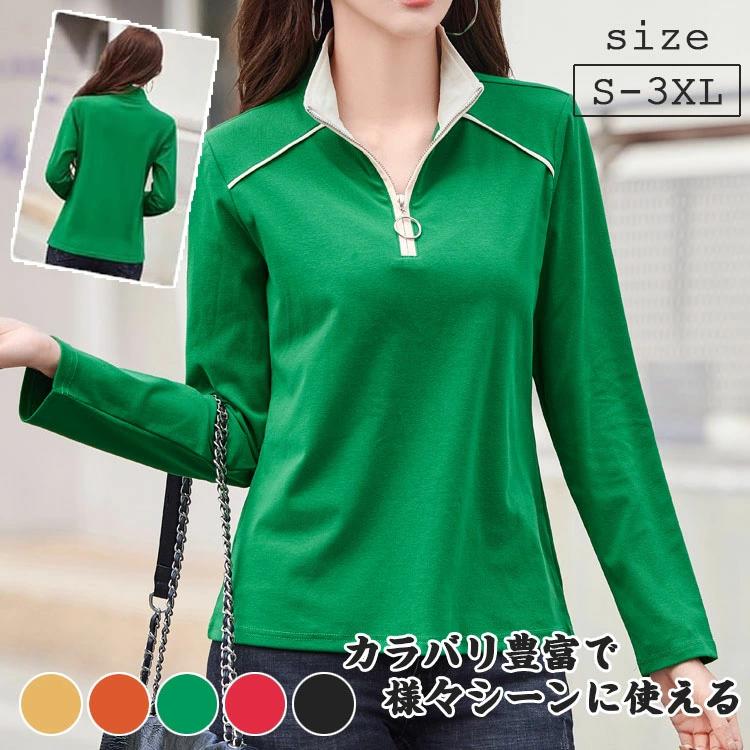 ポロシャツ バイカラー 女性用 ポロシャツ おしゃれ ジップアップ 立ち襟 長袖 レディース シャツ レディース 綿 長袖 トップス