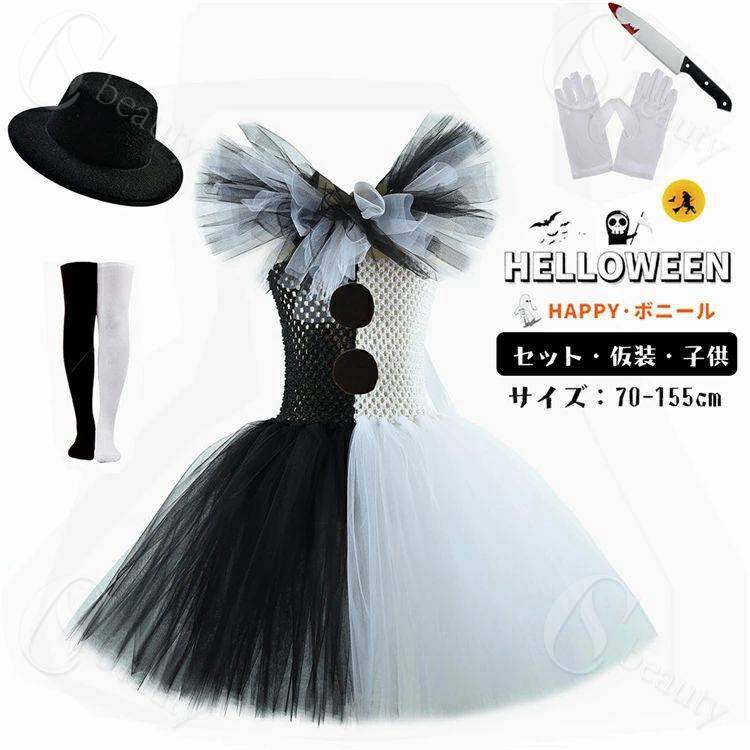 ハロウィン 仮装 チュール キッズ コスプレ ウイッチ デビル 子供 魔女 ワンピース ブラック ホワイト 可愛い 演出服 姫様 パーティー 衣装 ハロウィン衣装 コスプレ テージ衣装 女の子 キャラクター Halloween コスプレ 子供コスチューム 発表会 cosplay 90-160cm