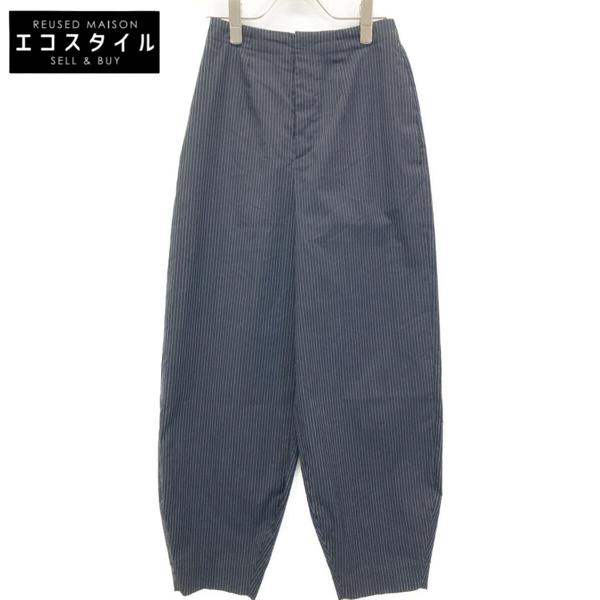 ENFOLD エンフォルド 【美品/23AW】300GA231-0230 WIDE-STRAIGHT COCOON TROUSERS ストライプ トラウザー/ ボトムス 36 ネイビー レディース 【中古】