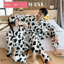 長袖 牛柄 フリース ペア パジャマ メンズ お揃いパジャマ 夫婦 お揃い 春向き プレゼント 寝間着 ルームウェア カップル 結婚祝い 長ズボン レディース クマ柄 部屋着 上下セット かわいい 韓国