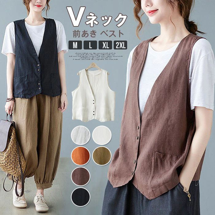 ベスト レディース 薄手 ジレ 夏 Vネック 前あき トップス 無地 ジレベスト サマーベスト チョッキ ダーク 前あきベスト オフィス 母の日