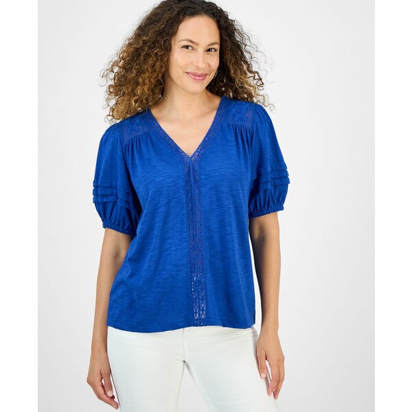 スタイルアンドコー レディース カットソー トップス Petite Mixed Trim Top, Exclusively at Macy's Abyss Blue