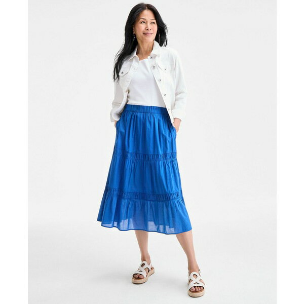 スタイルアンドコー レディース スカート ボトムス Women's Cotton Lace Pull On Tiered Skirt, Exclusively at Macy's Abyss Blue