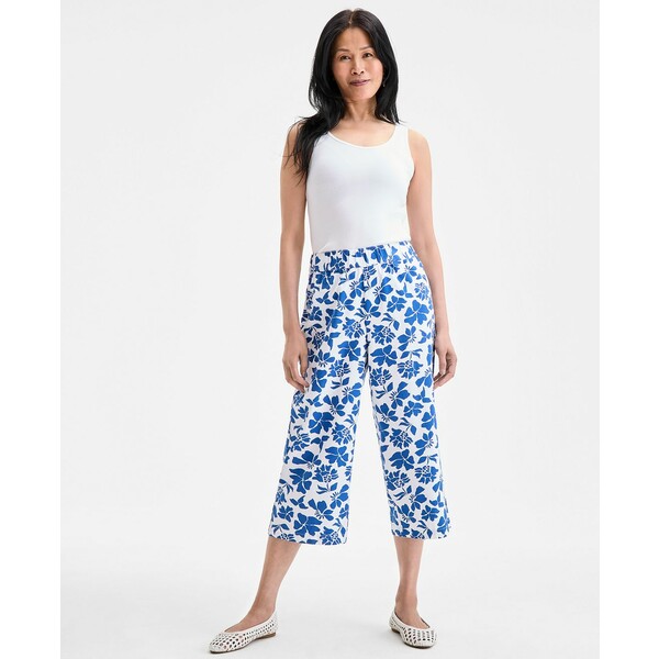 スタイルアンドコー レディース カジュアルパンツ ボトムス Petite Floral Spark Printed Cotton Cropped Pants, Exclusively at Macy's Floral Abyss Blue
