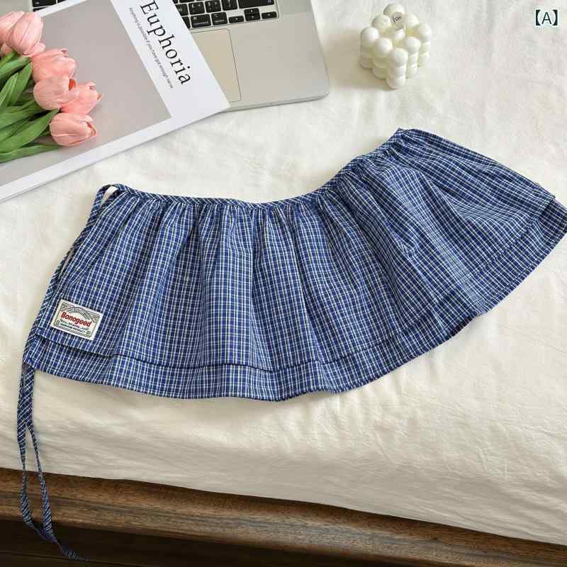 ・素材: 綿・スカート丈: ミニ・色: 深青チェック, 青ストライプ, 青白チェック, カーキ, 赤チェック, 黒・サイズ: フリー・スタイル: 韓国, カジュアル・スカートの種類: スカート