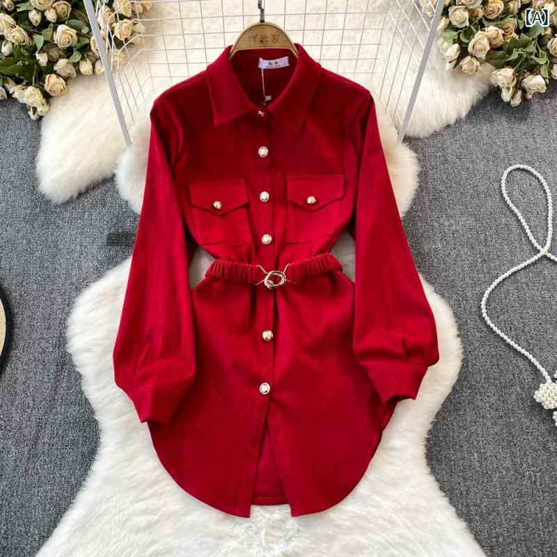 ・カテゴリ: シャツ・スタイル: エレガント、通勤スタイル・主な素材: スパンデックス・主な素材成分: 30%以下・生地名: シェニール・ネックライン: 襟付き・袖丈: 長袖・袖タイプ: レギュラー・柄: 無地・シルエット: ルーズフィット・フロント: プルオーバー・カラー展開: レッド、ブラック、アプリコット、カーキ、ブラウン、ミリタリーグリーン・サイズ: フリーサイズ