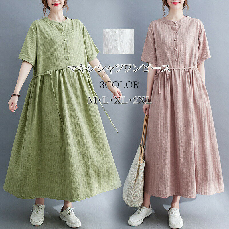 ワンピース マキシワンピース ロングワンピース レディース チュニック 半そで 半袖 地 マキシ ロングワンピ シャツワンピース 綿麻 ゆったり 体型カバー 通気性よい 綿混 着痩せ ベーシック カジュアル 薄手 部屋着 ルームウェア シンプル 送【商品情報】■サイズ(cm)表示サイズ:M/L/XL/2XLM:着丈118cm バスト108cm 袖丈23.5cm 肩幅42cm L:着丈119cm バスト112cm 袖丈24cm 肩幅43cmXL:着丈120cm バスト116cm 袖丈24.5cm 肩幅44cm2XL:着丈121cm バスト120cm 袖丈25cm 肩幅45cm■備考【素材】綿麻混【セット内容】ワンピース単品【透け感】ホワイトのは少しあり【裏地】なし※寸法は手測りなので若干誤差がございますが、ごくださいませ。※お品物の色合いは、写真撮影、パソコン画面表示等の環境の違いにより、若干異なる場合がございますので予めごくださいませ。 メーカー希望小売価格はメーカーカタログに基づいて掲載しています