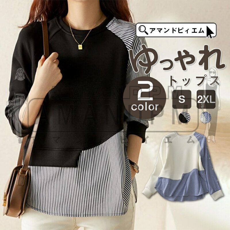 トップス レディース 春 秋 冬 カジュアル きれいめ プルオーバー 長袖 通勤 トレーナー 切り替え ゆったり 着?せ 体型カバー 大きいサイズ シンプル おしゃれ フリル プリーツ 可愛い 大人 コーデ オーバーサイズ 日常 上品 30代 40代 50代