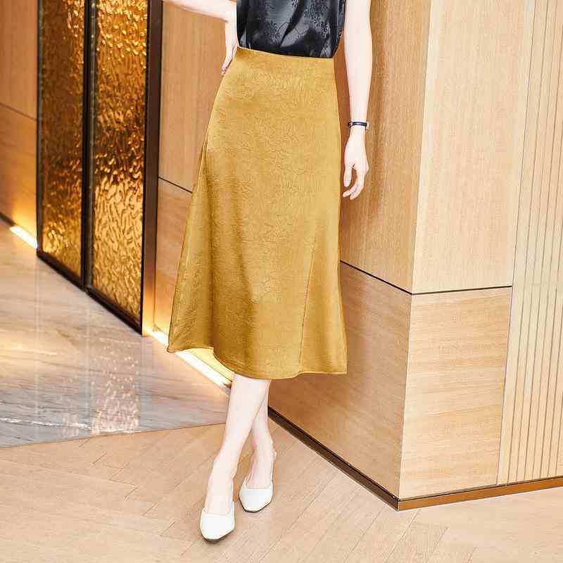 ・カテゴリ: スカート・スタイル: エレガント、通勤・主な素材: ポリエステル・生地: アセテート・スカートタイプ: Aライン・スカート丈: ミディ丈・柄: 無地・加工: パッチワーク、切り替え・特徴: ジャガード織り・カラー展開: ブラック、ホワイト、シャンパン、アンカーレッド、ゴールド・サイズ展開: S、M、L、XL、2XL