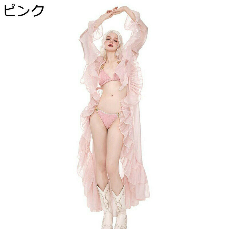 ビキニ 水着 レディース 3点セット 三角トップ カバーアップ ホルターネック シースルーアウター セクシー ビーチウェア 紫外線防止 女性らしい ポッチャリ 肌守り シンプル 温泉浴 海外旅行