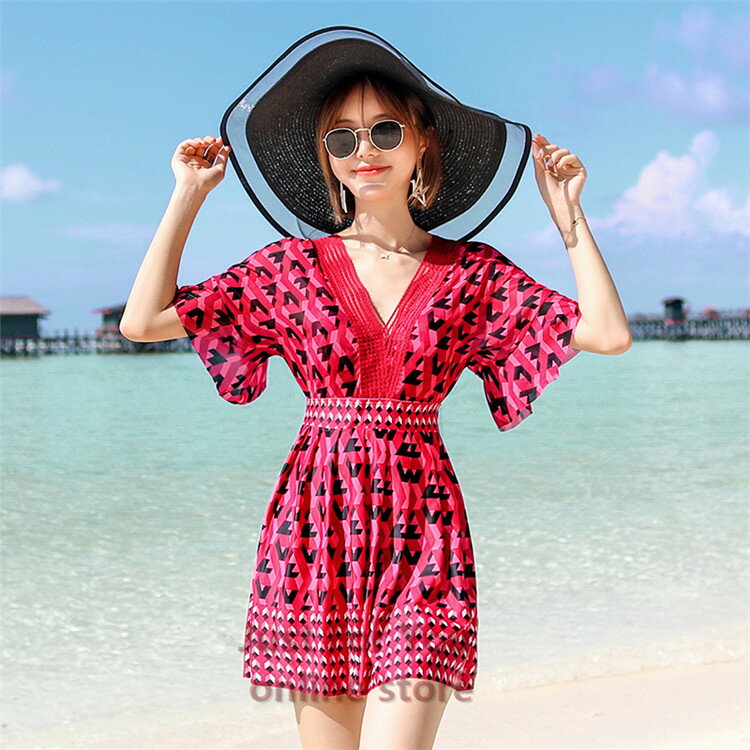 ワンピース水着 体型カバー 水着 レディース 大きいサイズ ママ水着 オールインワン 総柄 赤 ぽっちゃり タンキニ セクシー プール 夏 女性 海 リゾート 女性 女子 20代 30代 40代