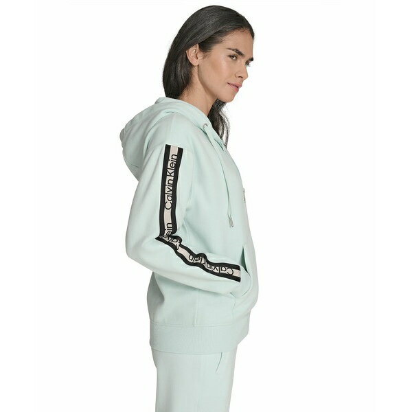 カルバンクライン レディース ジャケット&ブルゾン アウター Women's Fleece Logo Tape Hoodie Jacket Aqua Blue
