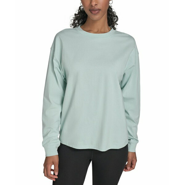 カルバンクライン レディース Tシャツ トップス Women's Long-Sleeve Crew Neck T-Shirt Aqua Blue