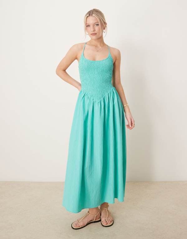 エイソス レディース トップス ワンピース マキシワンピース マキシ ASOS DESIGN scoop neck crinkle maxi dress with cross back in aqua Aqua Blue ブルー