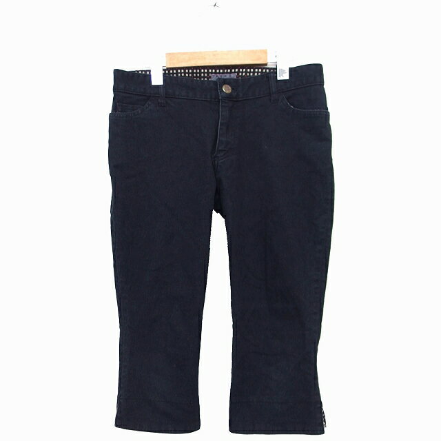 【中古】アクアブルー aqua blue デニム パンツ クロップド ストレッチ パイピング コットン 綿 2 ネイビー 紺 /HT8 レディース 【ベクトル 古着】 230209
