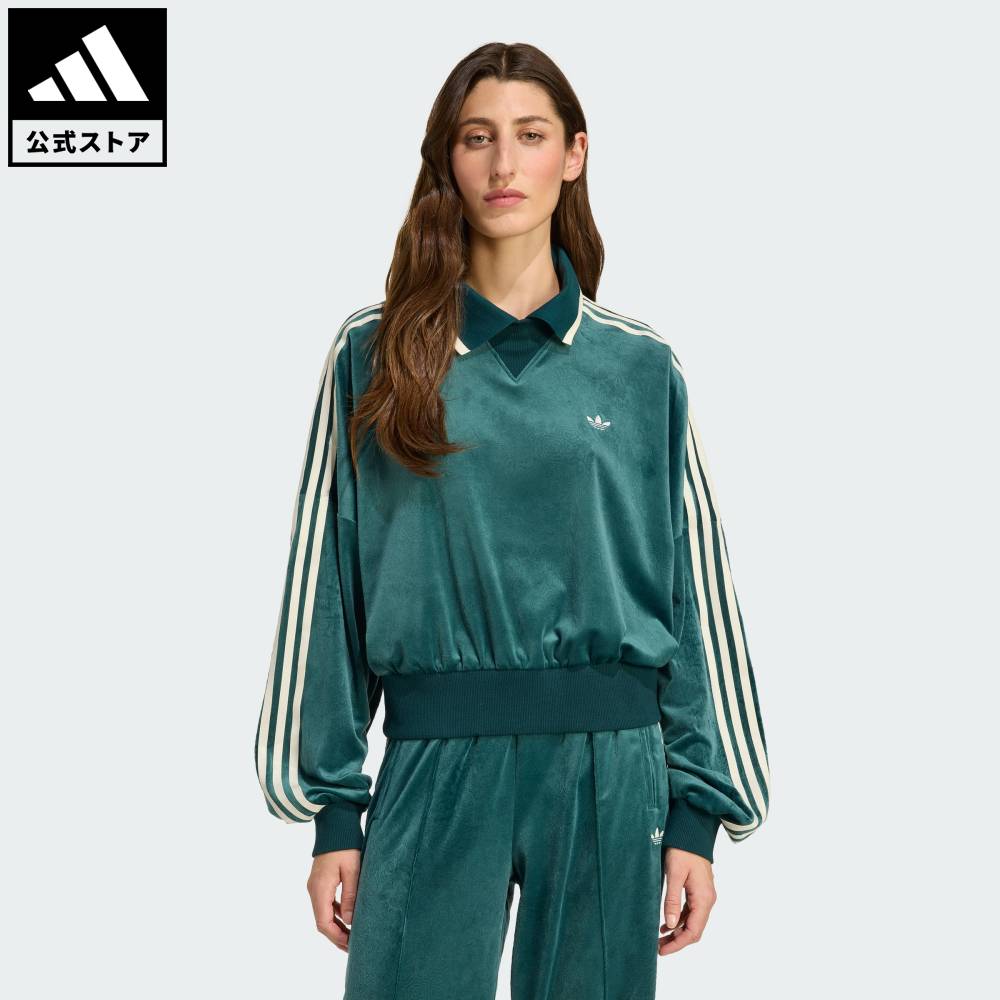 【公式】アディダス adidas 返品可 ライフスタイル adidas Originals × Liberty London エンボス加工 ベルベット スウェットシャツ オリジナルス レディース ウェア・服 スウェット(トレーナー) 緑 グリーン JW5274