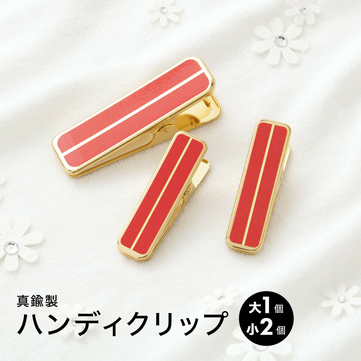 商品詳細spec.商品番号wasou875k-3047色ゴールドに朱色など素材真鍮注意事項●メール便(ポスト投函)利用規定・商品到着の目安は発送日より1~3日程度(日時指定不可)・代金引換不可・配送中の汚損・破損など事故補償:上限あり※複数の商品をご注文いただきメール便の規格を超えてしまう場合、当店側にて宅配便での配送に変更させて頂きます。併せて配送料金も変更となりますので予めご了承下さい。詳細は会社概要の「配送方法」をご確認ください。 サイズ表幅長さ大約2cm約7cm小約1.5cm約5cm着付けの際の仮止めに大変重宝するハンディクリップ便利な和装小物のハンディクリップです。大きめのクリップ1点と小さいクリップ2点の3点セットとなります。素材は錆びにくい真鍮製です。内側にはクッションでカバーしているので、ズレにくく、生地を傷める心配がありません。着付けの際の衿や帯の手先の仮どめだけでなく、雨降りの際の裾押さえなどにご利用ください。おしゃれと実用性に優れた小物で、着付けの時間もお楽しみください。