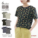 【ゆうパケット33】tシャツ レディース 半袖 カジュアル 綿100% オシャレ かわいい フルーツ バナナ イチゴ プリント 総柄 M L