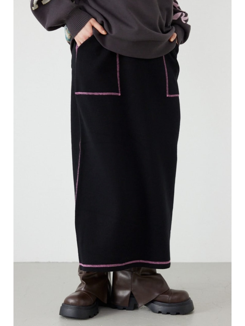 スウェットライクサイドステッチニットスカート RODEO CROWNS WIDE BOWL ロデオクラウンズワイドボウル スカート ロング・マキシスカート イエロー ブラック グレー【送料無料】[Rakuten Fashion]