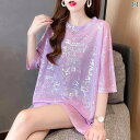 Tシャツ レディース おしゃれ カジュアル 半袖 夏 韓国 ゆったり ミディアム丈 きらきら 薄手 涼しい 快適