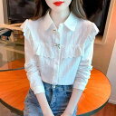 ブラウス レディース 長袖 レース 切り替え ポロ襟 ボタン ポリエステル 個性的なデザイン 快適 大人かわいい 若見え エイジレス おしゃれ オフィス カジュアル 普段使い 春夏
