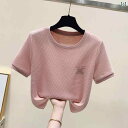 レディース 夏 カジュアル 半袖 シャツ トップス 普段着 アプリコット おしゃれ 刺繍 T サマー 快適 スリム ショート