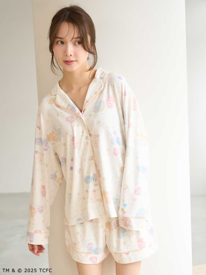 SNIDEL HOME(スナイデルホーム)【Care Bears(TM)】開襟シャツCare Bears™とのカラフルな5周年アニバーサリーコラボシリーズSNIDEL HOMEが5周年を迎えたこの秋、カラフルなケアベアたちがコラボレーションでお祝いをしてくれました。思い思いにお家でくつろぐケアベアたちと、夜空を彩る月や星のモチーフが、秋の夜長に夢心地なひとときを届けてくれます。ウェアだけでなく、ギフトにもぴったりな小物たちも充実。SNIDEL HOMEのためにもこもこのルームウェアを着てヘアターバンをつけて、お部屋でリラックスする様子を特別に描いてもらった描き起こしのケアベアたち。この秋、SNIDEL HOMEでしか手に入らないアイテムの数々をお楽しみください。【Design/Styling】星が瞬く夜空で、描き下ろしの5匹のケアベアたちがくつろぐ総柄プリントのパジャマシリーズです。パイピング入りの開襟シャツは、柔らかなカットソー素材でリラックスできる着心地。ベアの絵柄は5種類で、オフホワイトのSweet Celebrations Bear™、オレンジのBirthday Bear™、ライトピンクのLove-a-lot-Bear™、ラベンダー色のSweet Dreams Bear™、ライトブルーのBedtime Bear™がひとつのアイテムにたっぷりと描かれています。ボディカラーはオフホワイト、ピンク、ネイビーの3色展開。同シリーズのショートパンツ(SHCT254089)やロングパンツ(SHCP254090)、ニットカーディガン(SHNT254084)などに合わせてお楽しみください。【透け感】なし【裏地】なし【伸縮性】あり【生地の厚さ】やや厚手※照明の関係により、実際よりも色味が違って見える場合があります。またパソコン・スマートフォンなどの環境により、若干製品と画像のカラーが異なる場合もございます。予めご了承ください。商品の色味は、商品単品画像をご参照下さい。 ※商品画像はサンプルのため、色味やサイズ等の仕様に変更がある場合がございますので、予めご了承ください。型番:SHCT254088-L8-3U QE7759【採寸】サイズ着丈バスト袖丈肩幅ゆき丈前下がりF62.5cm106cm51cm46cm74cm22cm商品のサイズについて【商品詳細】中国素材:ポリエステル60%,レーヨン33%,ポリウレタン7%/<美容加工>CICAサイズ:F[99]※画面上と実物では多少色具合が異なって見える場合もございます。ご了承ください。商品のカラーについて 【予約商品について】 ※「先行予約販売中」「予約販売中」をご注文の際は予約商品についてをご確認ください。■重要なお知らせ※ 当店では、ギフト配送サービス及びラッピングサービスを行っておりません。ラッピング・ギフト配送について同時に複数の商品を注文された場合メーカー希望小売価格についてご利用ガイドSNIDEL HOME(スナイデルホーム)【Care Bears(TM)】開襟シャツCare Bears™とのカラフルな5周年アニバーサリーコラボシリーズSNIDEL HOMEが5周年を迎えたこの秋、カラフルなケアベアたちがコラボレーションでお祝いをしてくれました。思い思いにお家でくつろぐケアベアたちと、夜空を彩る月や星のモチーフが、秋の夜長に夢心地なひとときを届けてくれます。ウェアだけでなく、ギフトにもぴったりな小物たちも充実。SNIDEL HOMEのためにもこもこのルームウェアを着てヘアターバンをつけて、お部屋でリラックスする様子を特別に描いてもらった描き起こしのケアベアたち。この秋、SNIDEL HOMEでしか手に入らないアイテムの数々をお楽しみください。【Design/Styling】星が瞬く夜空で、描き下ろしの5匹のケアベアたちがくつろぐ総柄プリントのパジャマシリーズです。パイピング入りの開襟シャツは、柔らかなカットソー素材でリラックスできる着心地。ベアの絵柄は5種類で、オフホワイトのSweet Celebrations Bear™、オレンジのBirthday Bear™、ライトピンクのLove-a-lot-Bear™、ラベンダー色のSweet Dreams Bear™、ライトブルーのBedtime Bear™がひとつのアイテムにたっぷりと描かれています。ボディカラーはオフホワイト、ピンク、ネイビーの3色展開。同シリーズのショートパンツ(SHCT254089)やロングパンツ(SHCP254090)、ニットカーディガン(SHNT254084)などに合わせてお楽しみください。【透け感】なし【裏地】なし【伸縮性】あり【生地の厚さ】やや厚手※照明の関係により、実際よりも色味が違って見える場合があります。またパソコン・スマートフォンなどの環境により、若干製品と画像のカラーが異なる場合もございます。予めご了承ください。商品の色味は、商品単品画像をご参照下さい。 ※商品画像はサンプルのため、色味やサイズ等の仕様に変更がある場合がございますので、予めご了承ください。型番:SHCT254088-L8-3U QE7759【採寸】サイズ着丈バスト袖丈肩幅ゆき丈前下がりF62.5cm106cm51cm46cm74cm22cm商品のサイズについて【商品詳細】中国素材:ポリエステル60%,レーヨン33%,ポリウレタン7%/<美容加工>CICAサイズ:F[99]※画面上と実物では多少色具合が異なって見える場合もございます。ご了承ください。商品のカラーについて
