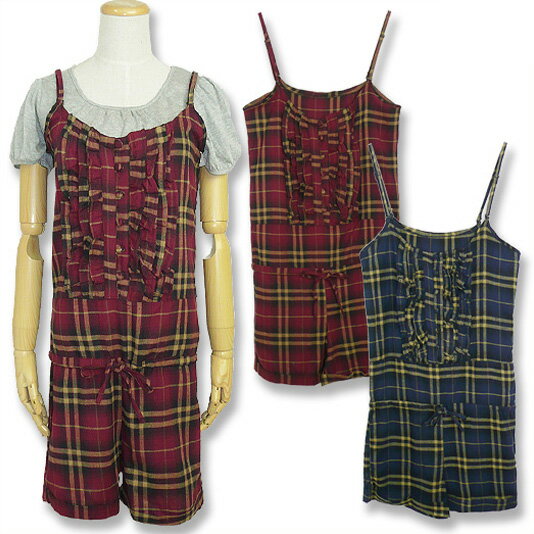 カラー レッド ブルー ※商品画像はできる限り実物を再現するよう心掛けておりますが、ご利用のモニター、環境等により、若干差異が生じる場合がございますので、予めご了承ください。 実寸サイズ ※サイズの計り方は⇒こちらから バスト 着丈(肩紐含まず) ウエスト 股下 M〜L 88cm 78cm 84cm 7cm 素材 コットン50% ポリエステル50% 商品特徴 ◆肩ストラップ調節可能 ◆ウエストは絞れます ◆フロントボタンは開閉できます【ガーリーサロペ】胸元フリルのショートサロペット♪ほんのり起毛ネル素材が秋らしい☆暖かみのあるチェック柄♪【ツナギ・オールインワン・コンビネゾン・ブラックウォッチ】 ほんのり起毛したネル素材に定番チェック柄が秋冬にぴったり♪ レギンスやタイツと合わせてもOKなショート丈でカジュアルに☆☆☆ フロントのボタンは外せるから脱ぎ着が楽です◎ ウエストは紐入りで絞れちゃいます♪ もちろん肩ストラップも調節可能!! 【ストレッチなし】