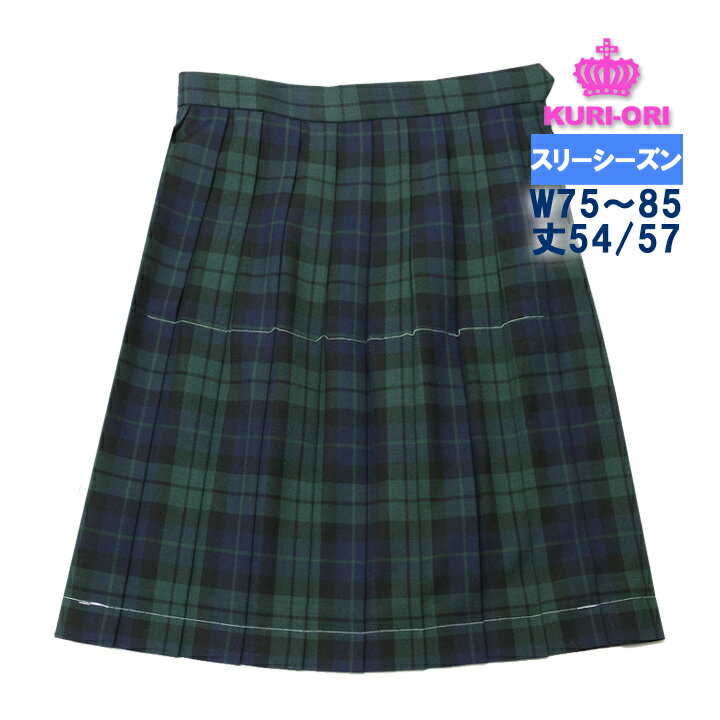 冬制服スカート【紺・グリーン・黒チェック】ウエスト60・63・66・69・72大きいサイズ75・80・85cm丈42〜60cmブラックウォッチ チェックスカート プリーツスカート車ひだスカート スクールスカート 式服 自由制服KURI-ORI【クリオリ】WKR431