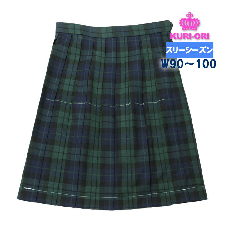 制服スカート 紺×グリーンチェック 大きいサイズ W90/95/100 丈54/60 車ヒダ20本 スリーシーズン 中学/高校 ブラックウォッチ KURI-ORIクリオリ