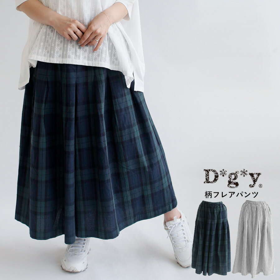 【期間限定SALE■】【クーポン対象】【送料無料】 D*g*y コットン100% 柄 ブラックウォッチ 細ストライプ フレア パンツ 春 夏 秋 冬 ボトムス dgy ディージーワイ 88-D3194