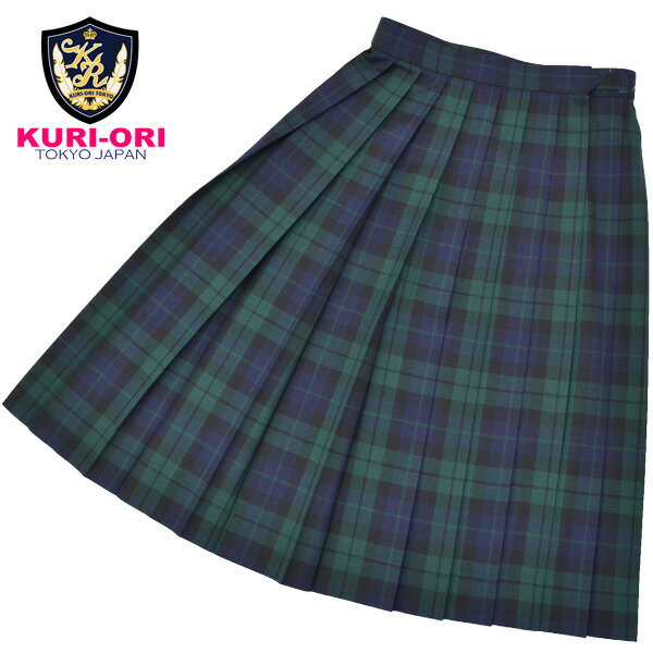制服スカート 紺×グリーンチェック W60-W72 丈54(ひざ丈)/57(ひざ下丈) スリーシーズン 中学/高校 ブラックウォッチ KURI-ORIクリオリ