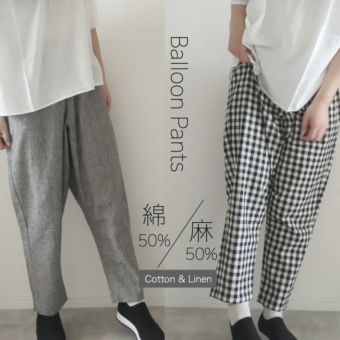 オリジナル バルーンパンツ 【ナチュラル コットンリネン バルーンパンツ】 オーバーサイズ ワイドパンツ ゆったり 綿 麻 チェック ギンガム ブラックウォッチ グレンチェック 赤ギンガム レディース CR-4 ラスロ rusro 【送料無料】