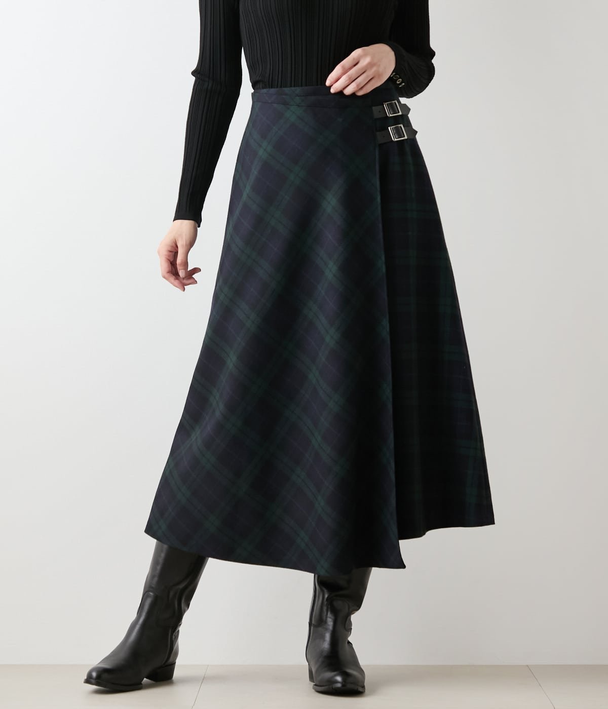 NEWYORKER(ニューヨーカー)ウールブラックウォッチ アシメキルトスカート秋冬のトラッドスタイルの主役になるキルトスカート。生地をバイアス使いした変形シルエットで、クラシカルでありながらモダンな表情に仕上げました。レザーのジャケットやブーツで程よいエッジをプラスしたり、シンプルなニットを合わせたりと、様々な着こなしをお楽しみいただけるアイテムです。■素材毛織物を得意とする尾州で生産されたウール100%生地。2025年秋冬のシーズンテーマである「ロンドンへの旅」をイメージし、伝統的なブラックウォッチ柄をブランドオリジナルで作成しました。ベルト部分には牛革を使用し、高級感漂う洗練された印象に。■デザインミディ丈の変形キルトスカート。フロントの合わせ位置をあえてずらし、生地をバイアス使いすることでドレープを美しく表現しました。ベルト部分は調節の効く本格仕様ながら、後ろファスナー開きのためスムーズに着脱が可能です。裏地あり。ポケットなし。■シーズン2025年秋冬商品■洗濯表示洗濯不可、 漂白不可、 タンブル乾燥不可、 アイロンは150℃まで、 弱いドライクリーニング(石油系)可、 ウェットクリーニング不可型番:202551256255-75-07 QF4629【採寸】7号:ウエスト68cm、ヒップ95.4cm、裾幅74cm、スカート丈80cm9号:ウエスト71cm、ヒップ98.4cm、裾幅75.5cm、スカート丈80cm11号:ウエスト74cm、ヒップ101.4cm、裾幅77.8cm、スカート丈82cm商品のサイズについて【商品詳細】ベトナム素材:毛100%,キルトベルト:牛革ポリエステル100%サイズ:7号、9号、11号※画面上と実物では多少色具合が異なって見える場合もございます。ご了承ください。商品のカラーについてNEWYORKER(ニューヨーカー)ウールブラックウォッチ アシメキルトスカート秋冬のトラッドスタイルの主役になるキルトスカート。生地をバイアス使いした変形シルエットで、クラシカルでありながらモダンな表情に仕上げました。レザーのジャケットやブーツで程よいエッジをプラスしたり、シンプルなニットを合わせたりと、様々な着こなしをお楽しみいただけるアイテムです。■素材毛織物を得意とする尾州で生産されたウール100%生地。2025年秋冬のシーズンテーマである「ロンドンへの旅」をイメージし、伝統的なブラックウォッチ柄をブランドオリジナルで作成しました。ベルト部分には牛革を使用し、高級感漂う洗練された印象に。■デザインミディ丈の変形キルトスカート。フロントの合わせ位置をあえてずらし、生地をバイアス使いすることでドレープを美しく表現しました。ベルト部分は調節の効く本格仕様ながら、後ろファスナー開きのためスムーズに着脱が可能です。裏地あり。ポケットなし。■シーズン2025年秋冬商品■洗濯表示洗濯不可、 漂白不可、 タンブル乾燥不可、 アイロンは150℃まで、 弱いドライクリーニング(石油系)可、 ウェットクリーニング不可型番:202551256255-75-07 QF4629【採寸】7号:ウエスト68cm、ヒップ95.4cm、裾幅74cm、スカート丈80cm9号:ウエスト71cm、ヒップ98.4cm、裾幅75.5cm、スカート丈80cm11号:ウエスト74cm、ヒップ101.4cm、裾幅77.8cm、スカート丈82cm商品のサイズについて【商品詳細】ベトナム素材:毛100%,キルトベルト:牛革ポリエステル100%サイズ:7号、9号、11号※画面上と実物では多少色具合が異なって見える場合もございます。ご了承ください。商品のカラーについて