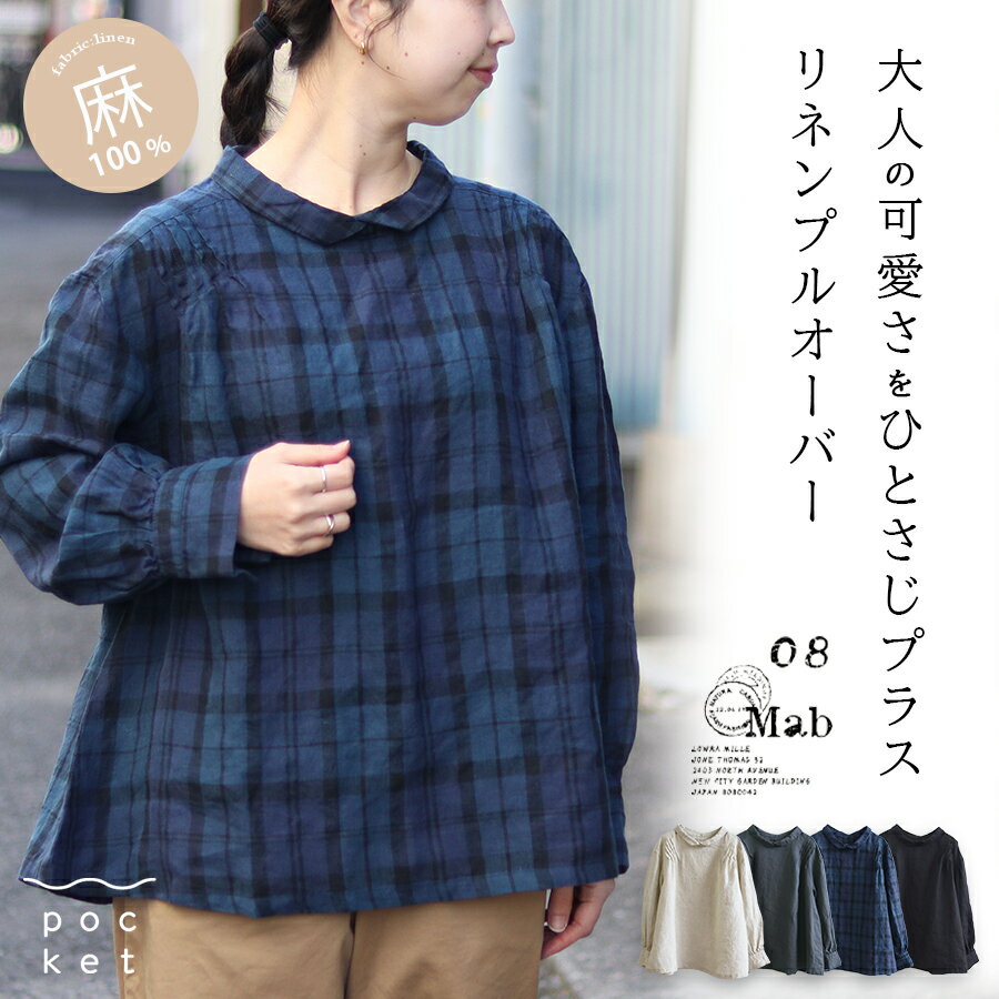 【最大5000円OFFクーポン! 11/27まで】 リネン プルオーバー ブラウス 麻100 シャツ レディース 08mab ゼロハチマブ おしゃれ 長袖 ナチュラル カジュアル 大きめ ゆったり 大人 かわいい トップス 黒 ブラック 生成り ベージュ グリーン ネイビー ブラックウォッチ 春 夏