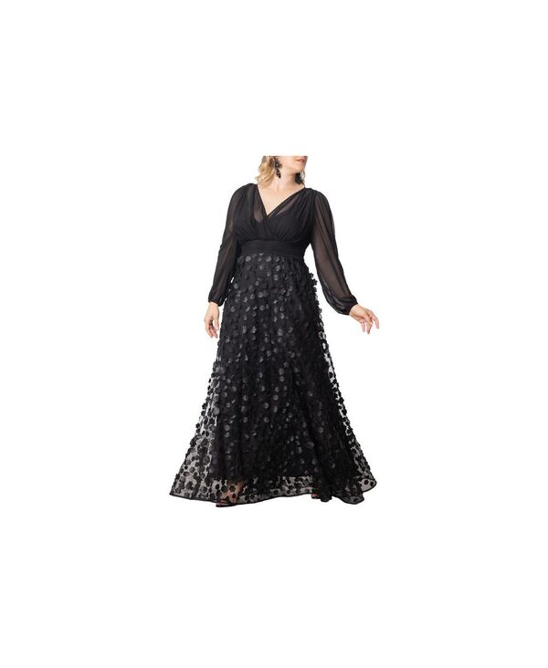 キヨナ レディース トップス ワンピース プラスサイズ メッシュ Kiyonna Plusize Blossoming Beauty Mesh Eveningown Onyx blossoms