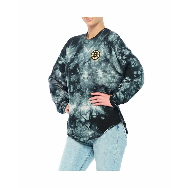 ファナティクス レディース Tシャツ トップス Women's Black Boston Bruins Crystal-Dye Long Sleeve T-shirt Black