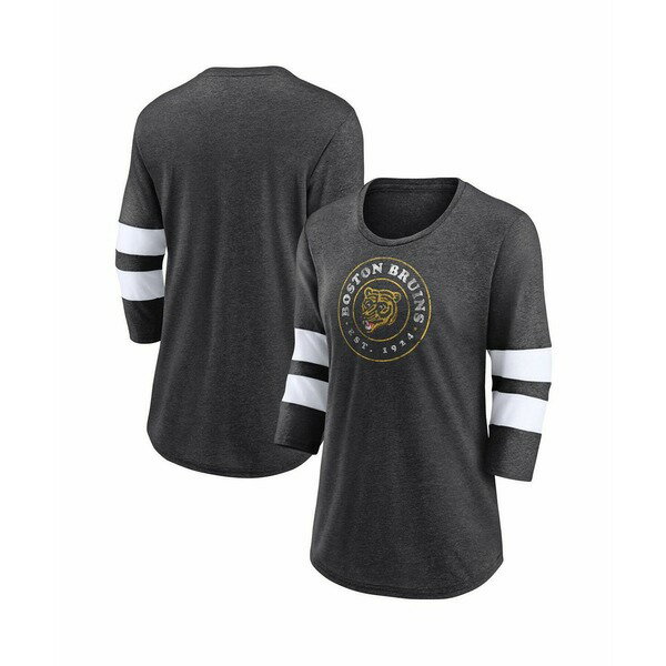 ファナティクス レディース カットソー トップス Women's Heather Charcoal Boston Bruins One Timer Tri-Blend Scoop Neck 3/4-Sleeve T-Shirt Heather Charcoal