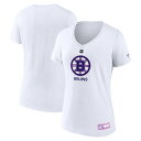 【送料無料】 ファナティクス レディース Tシャツ トップス Women's Fanatics White Boston Bruins 2024 Hockey Fights Cancer V-Neck T-Shirt Bsb White