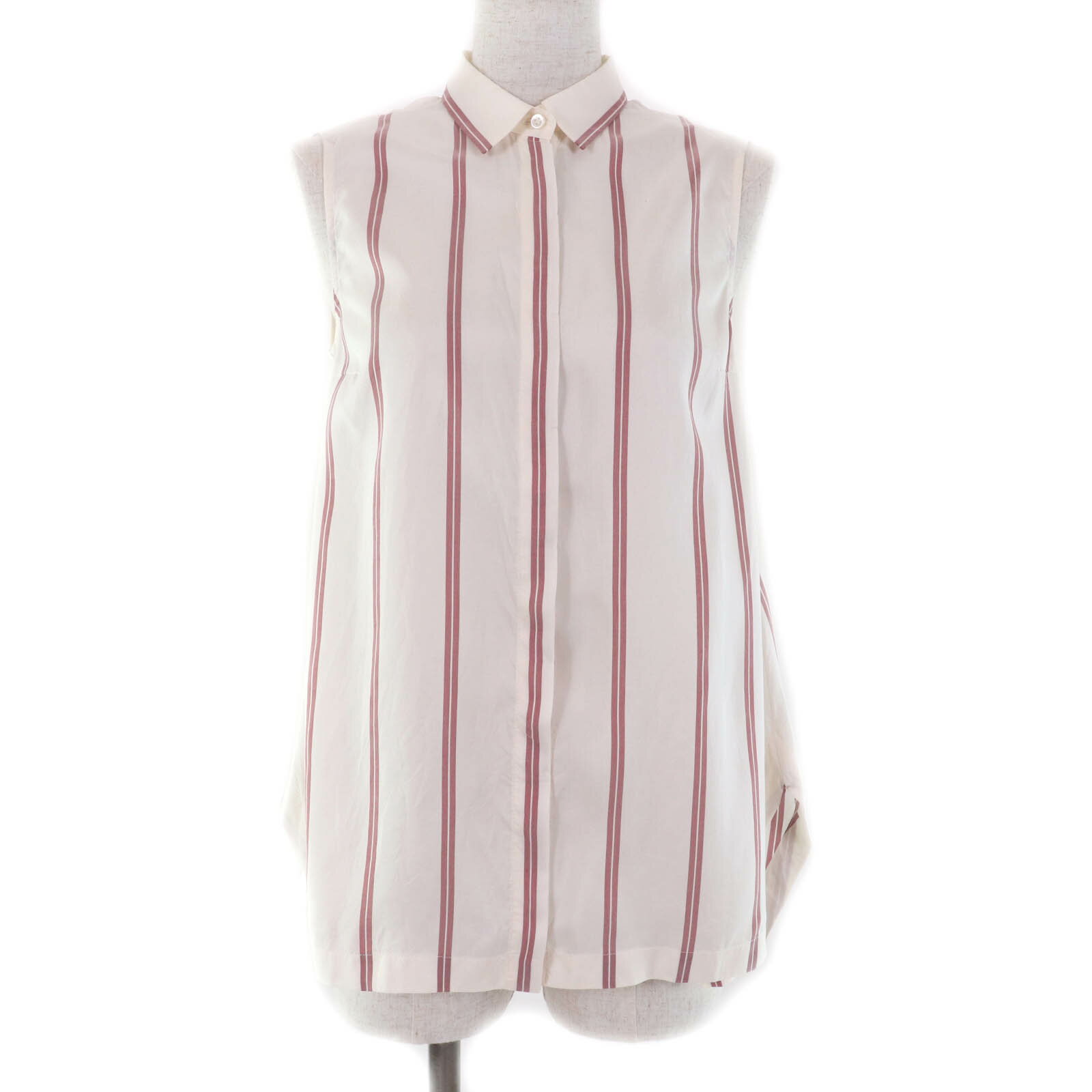 極美品★Brunello Cucinelli ブルネロクチネリ シルク100% ストライプ柄 ノースリーブシャツ アイボリー XS イタリア製 レディース【中古】