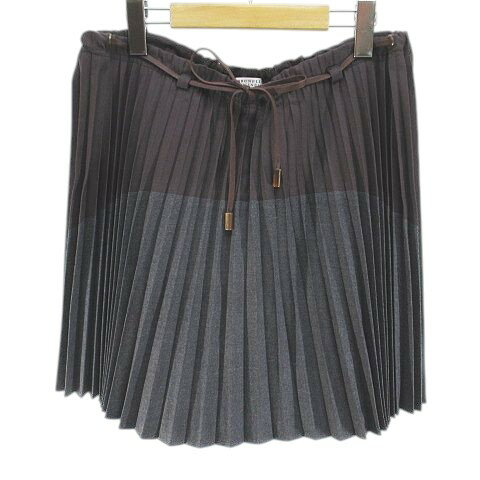 【中古】ブルネロクチネリ BRUNELLO CUCINELLI DS71718 膝上 ミニ プリーツスカート スカート 絹 シルク 38 灰系 グレー バイカラー イタリア製 リボン 毛 ウール 裏地 無地 レディース 【ベクトル 古着】 250926