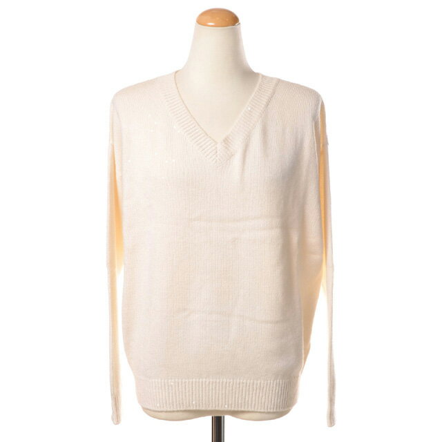 ブルネロクチネリ (Brunello Cucinelli) Vネック長袖セーター カシミアシルクニット ホワイトm73539902c159 2024AW レディース秋冬新作 送料無料 正規取扱