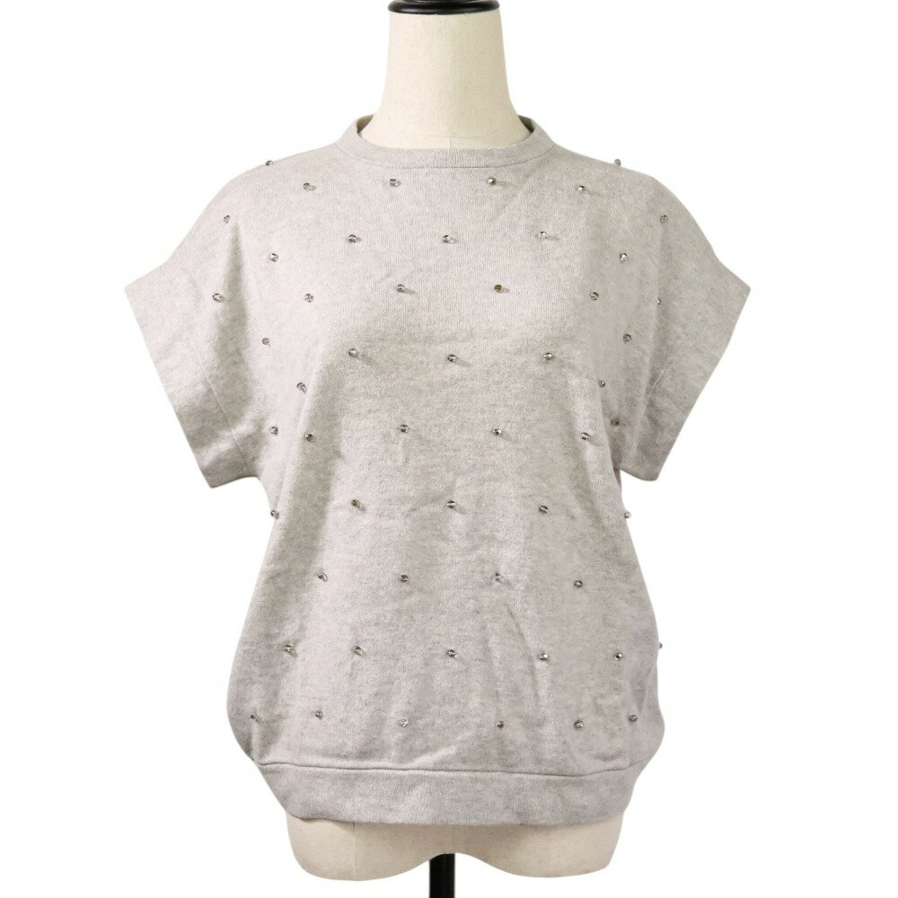 【中古】美品 Brunello Cucinelli ブルネロクチネリ ガラスビーズ付き カシミヤ100% ショートスリーブ ニット S グレー レディース Luxs ブランド古着のリュクス